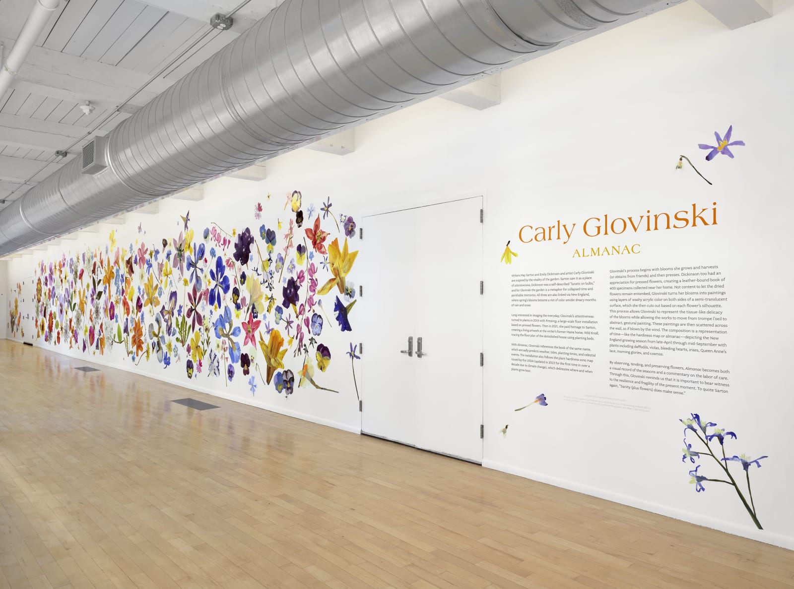 Rooted in observation and fueled by a curiosity about the history of objects and handicraft processes, Carly Glovinski makes work that explores the make-do, resourceful attitudes associated with domestic craft and a reverence for nature. The elements of time and place are embedded in work that mines her surrounding coastal New Hampshire and Maine environment for inspiration and looks to the repetitive cycles of seasonal blooms and celestial orbits.